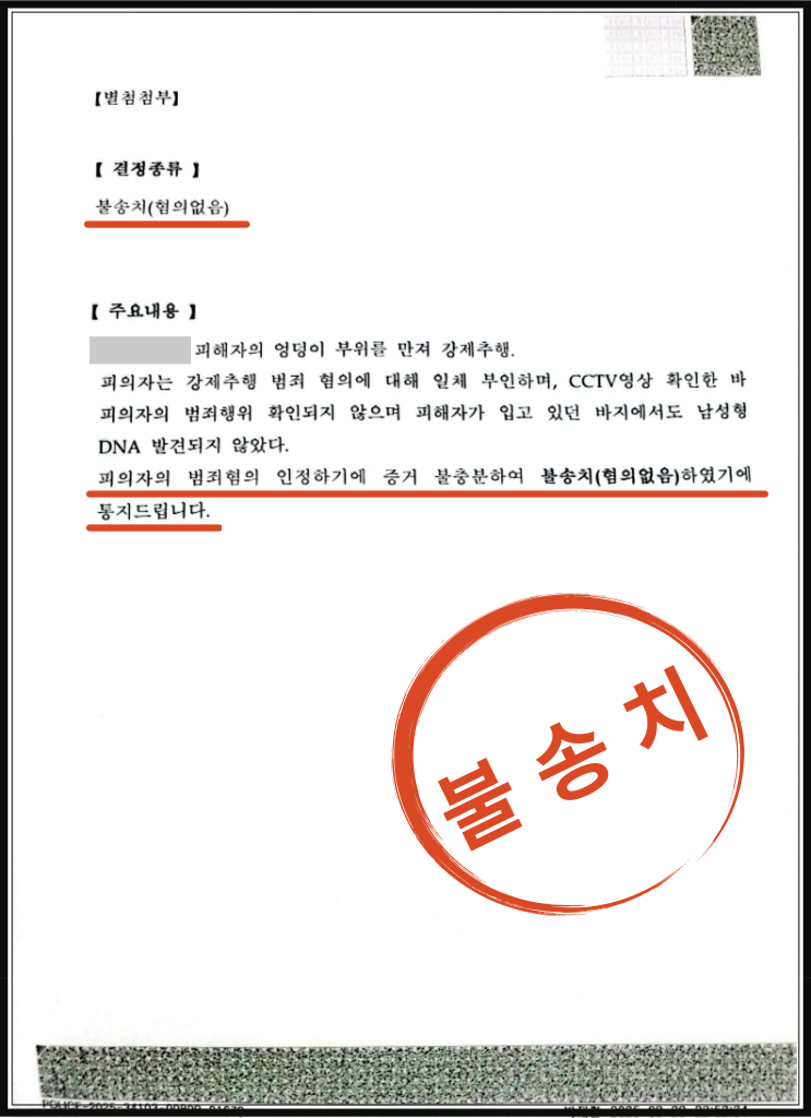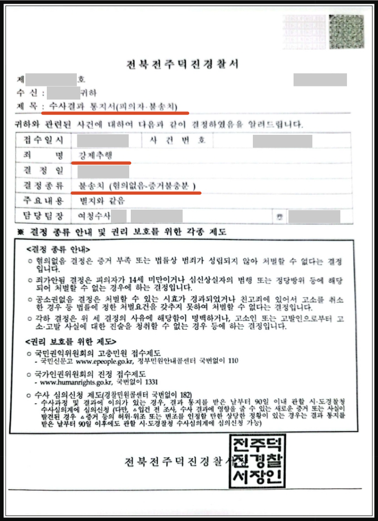그 결과 경찰 단계에서 불송치(혐의없음) 결정을 이끌어내었습니다.