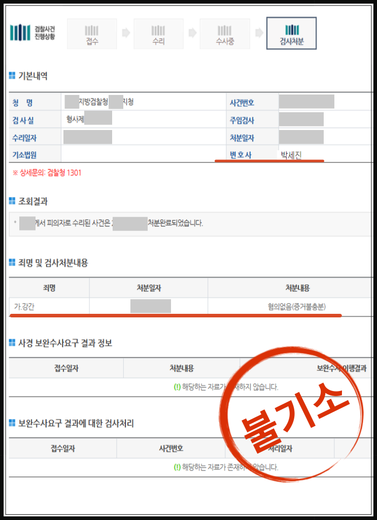 그 결과 검찰 단계에서 불기소(혐의없음) 처분을 이끌어내었습니다.